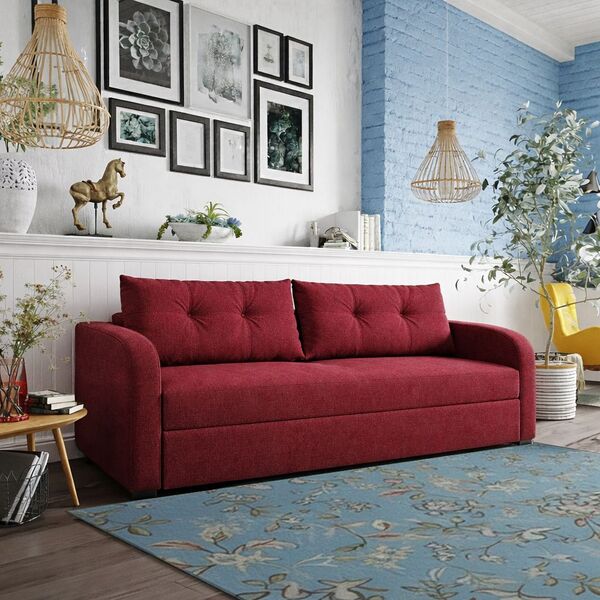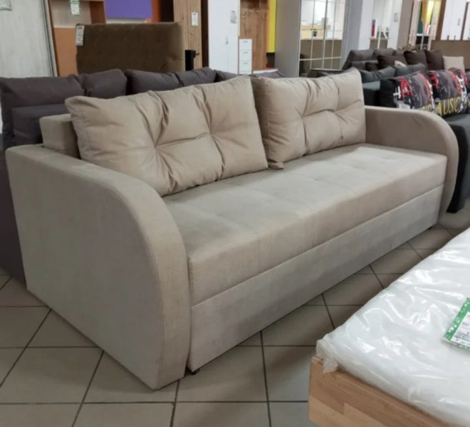 Матрац дивану складається: * посилений 5-ти витковий пружиний блок «Bonnel» (пружини не просідають під час експлуатації) * багатошарове ППУ (пенополіуретан) підвищеної щільності (апобігає просіданню матрацу часом і гарно тримає форму дивану), * термопресованний войлок (вовняна тканина, що гарно тримає тепло і не парить) * сінтепон для помякшення; *спанбонд-здатний витримувати велику вагу, не втрачаючи цілісності та не піддаючись деформації, що захищає внутрішнє наповнення матрасу від подходження і розриву від надмірного аюо не равномірного навентаження; * технічна тканина на хб основі (щоб не парив матрац); * основна тканина оббивки. По всій довжині дивана місткий ящик для білизни. Механізм розкладання євро-книжка. Основа каркасу посилений брус дерева соснових порід. Дивани йдуть у комплекті з двома великими прошитими меблевими подушками. Дивани підтримуються у складській програмі.
