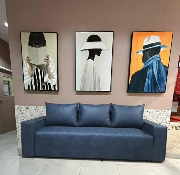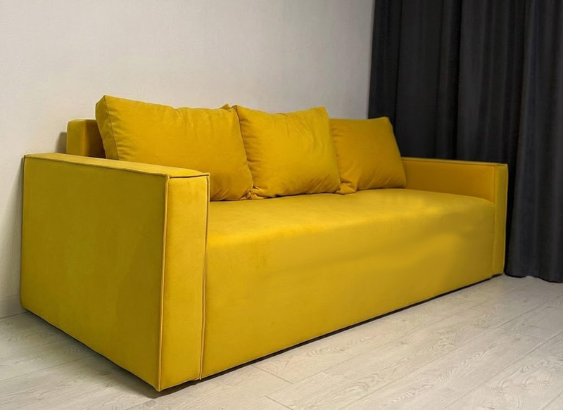 Дивани йдуть у комплекті з трьома великими меблевими подушками прямокутної форми.