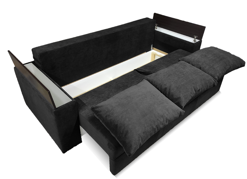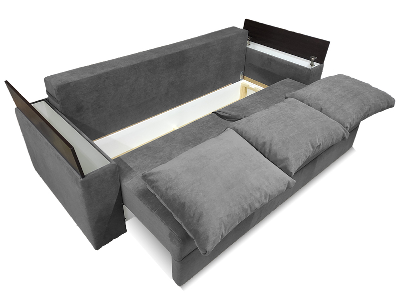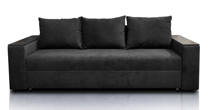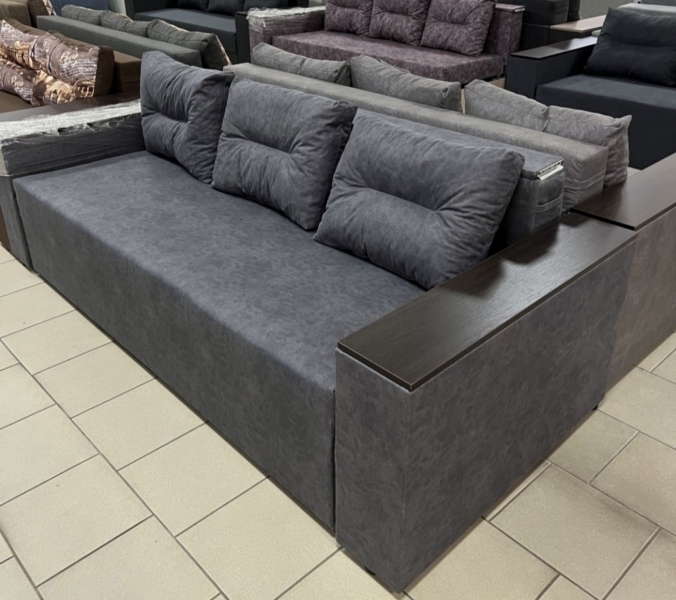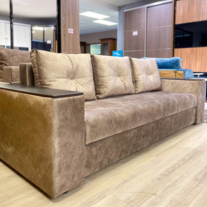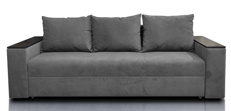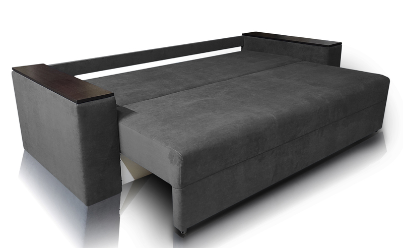 Диван Барон - вишуканий, стильний, функціональний і міцний диван "преміум якості" для повсякденного сну по доступній ціні. Задня стінка дивану зашивається основною тканиною. Диван можна ставити і під стінку і по сердині кімнати. Каркас дивану посилений за рахунок цільного брусу "золотий стандарт" 60 мм * 45 мм, який витримує підвищене навантаження. Диван має високу ізносостійкість за рахунок посиленого брусу, з якого виготовлється каркас дивану, а також прошивок по матрацу. Диван Барон на протязі всього терміну експлуатації буде мати гарний і охайний вигляд і пружній матрац, як при перших днях використання. Не прошиті дивани через 2 - 3 тижні втрачають 5-10% своєї пружності матрацу і в такому вигляді експлуатуються далі +- 10 років. Диван має високий матрац матрац 20-22 см на основі енергозберегіючих матеріалів і пружинного блоку "бонель". У боковинах дивану ніші для білизни. Ширина боковин 20 см. Габарити дивану у складеному стані: довжина 233 см х глибина 98 см х висота 85 см. Спальне місце: Ширина 148 см х довжина 192 см. Матрац дивану складається: * посилений 5-ти витковий пружиний блок «Bonnel» (пружини не просідають під час експлуатації) * багатошарове ППУ (пенополіуретан) підвищеної щільності (апобігає просіданню матрацу часом і гарно тримає форму дивану), * термопресованний войлок (вовняна тканина, що гарно тримає тепло і не парить) * сінтепон для помякшення; *спанбонд-здатний витримувати велику вагу, не втрачаючи цілісності та не піддаючись деформації, що захищає внутрішнє наповнення матрасу від подходження і розриву від надмірного аюо не равномірного навентаження; * технічна тканина на хб основі (щоб не парив матрац); * основна тканина оббивки. По всій довжині дивана місткий ящик для білизни. Механізм розкладання євро-книжка. Основа каркасу посилений брус дерева соснових порід. Накладки на підлокітниках ламіноване ДСП. Накладки на боковинах можуть бути темні"венге" (стандарт) або "дуб сонома" світлі, під натуральне детево (під замовлення). Дивани йдуть у комплекті з трьома великими меблевими подушками. Подушки можуть бути суцільні прямокутної форми, або прошиті (під замовлення). Дивани підтримуються у складській програмі. Гарантія виробника на диван 18 місяців. Здійснюємо доставку по Києву та області, а також по всій Україні