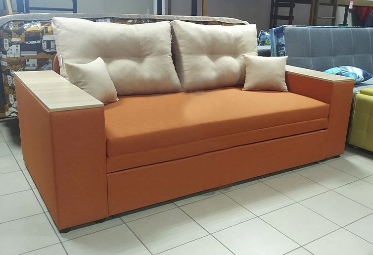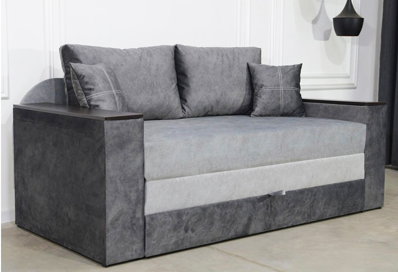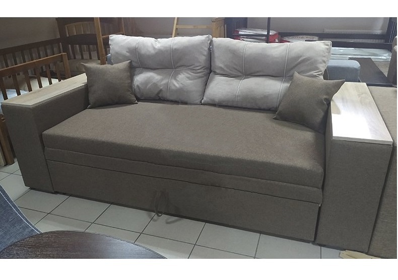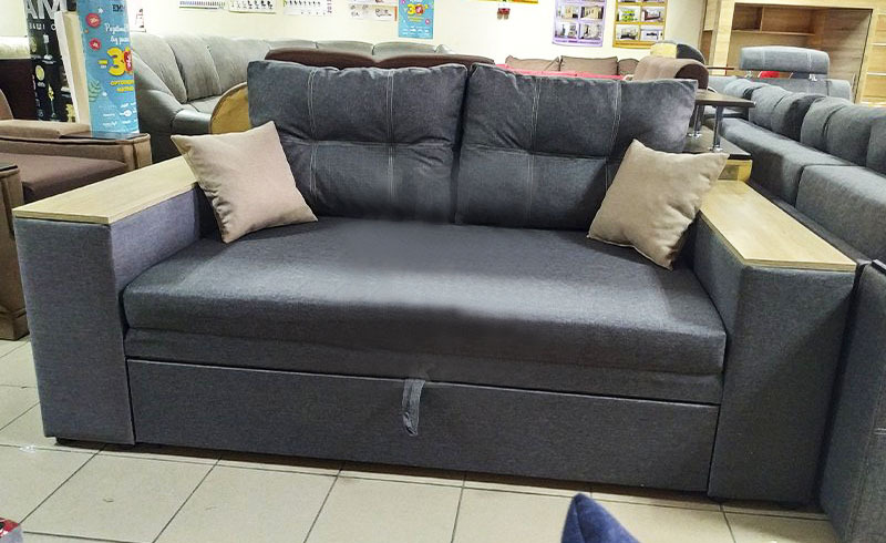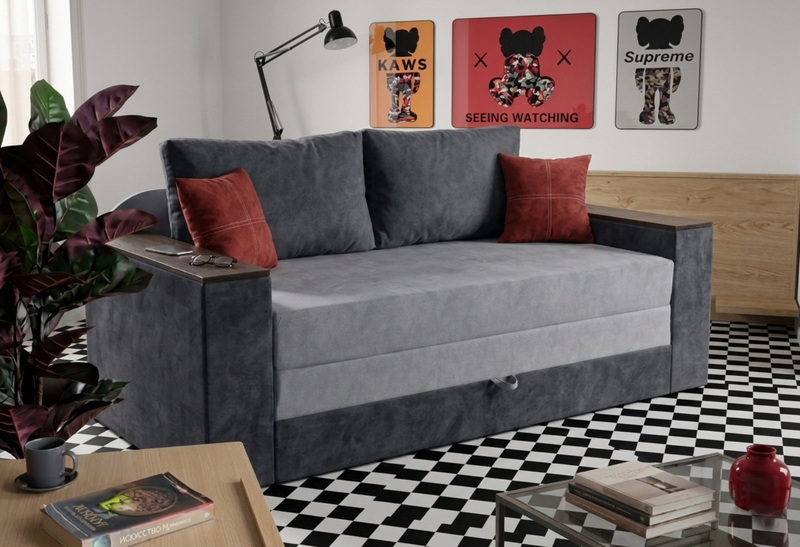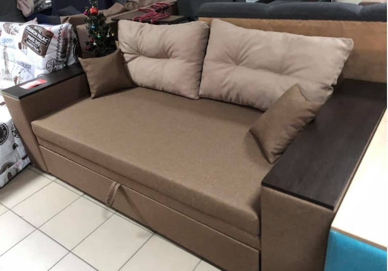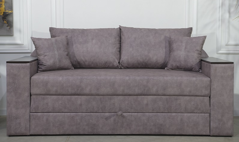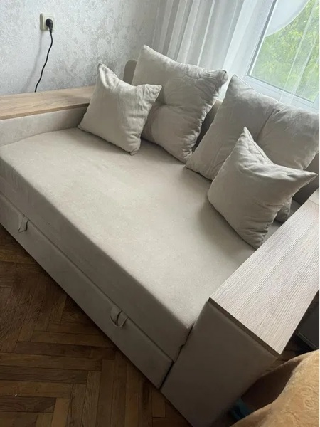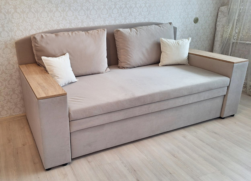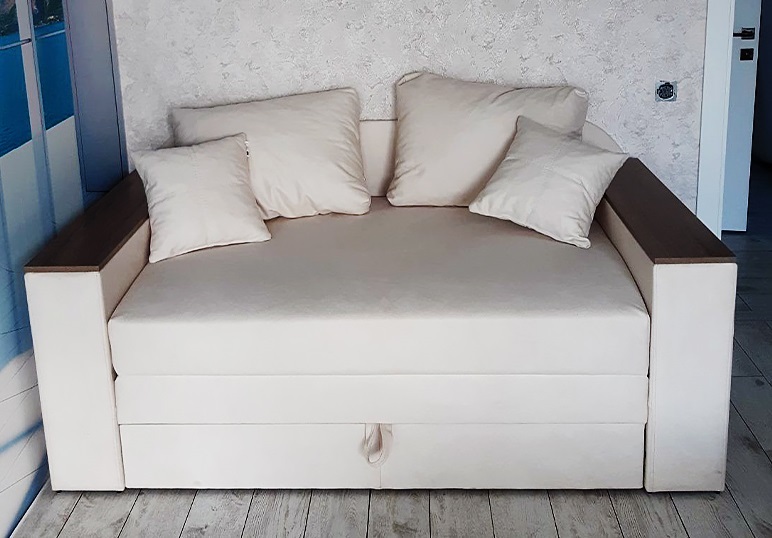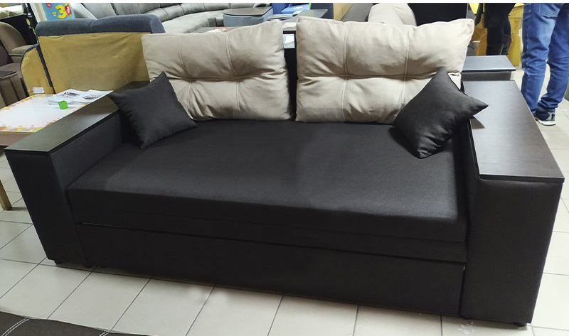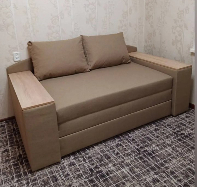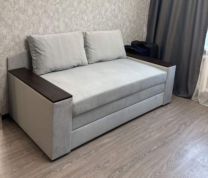 Кубус - викатний диван для повсягденного сну з нішами у боковинах. Каркас дивану посилений за рахунок цільного брусу "золотий стандарт" 60 мм * 45 мм, який витримує підвищене навантаження. На боковинах дивану наклдки з ДСП, які можуть слугувати невеликим столиком для ноутбуку і улюбленої філіжанки кави. У даної моделі підлокітникі "ніши" для зберігання речей ( відкриваються), шириною по 20 см з кожної сторони.
