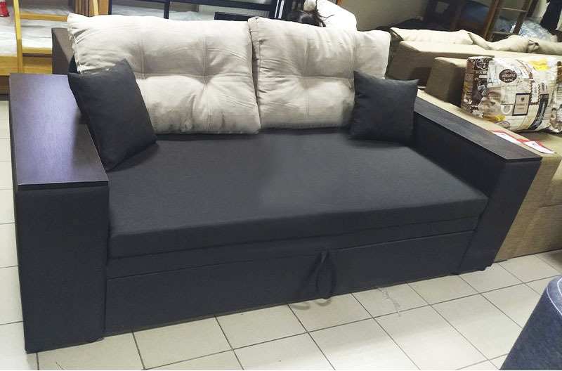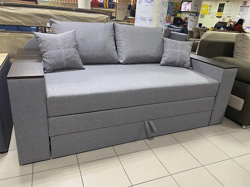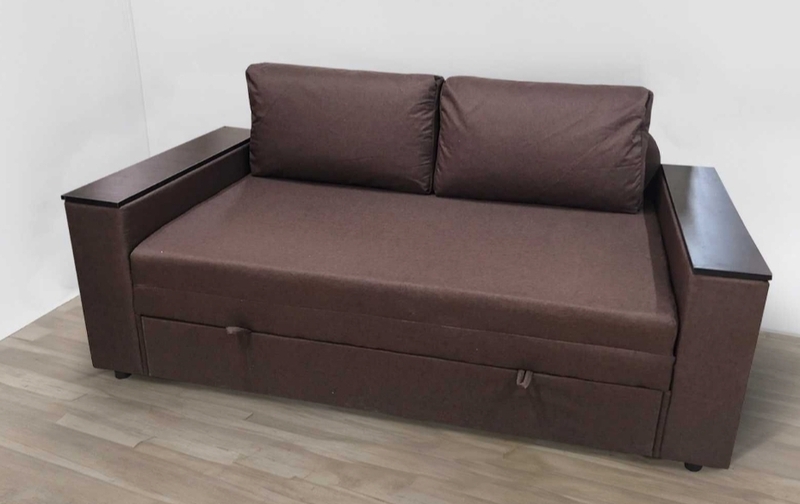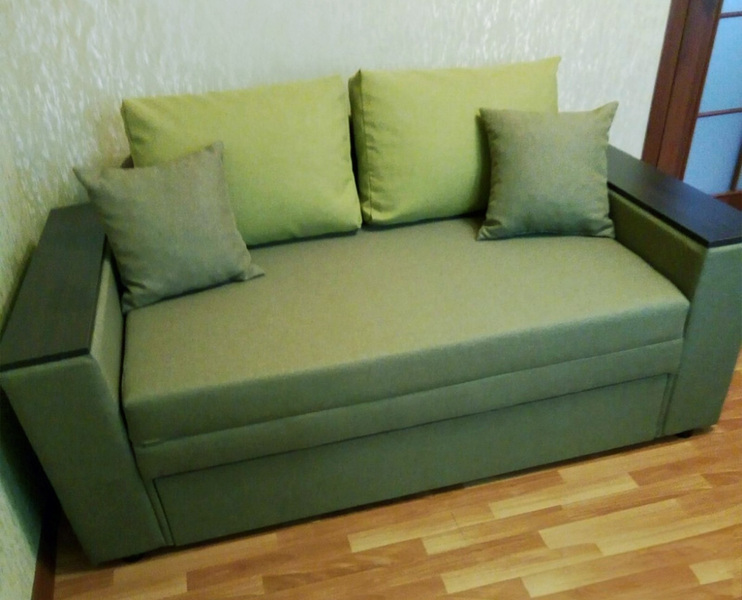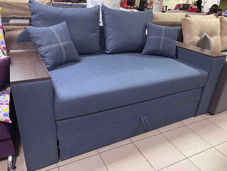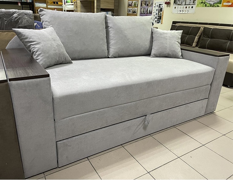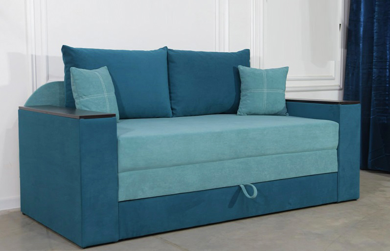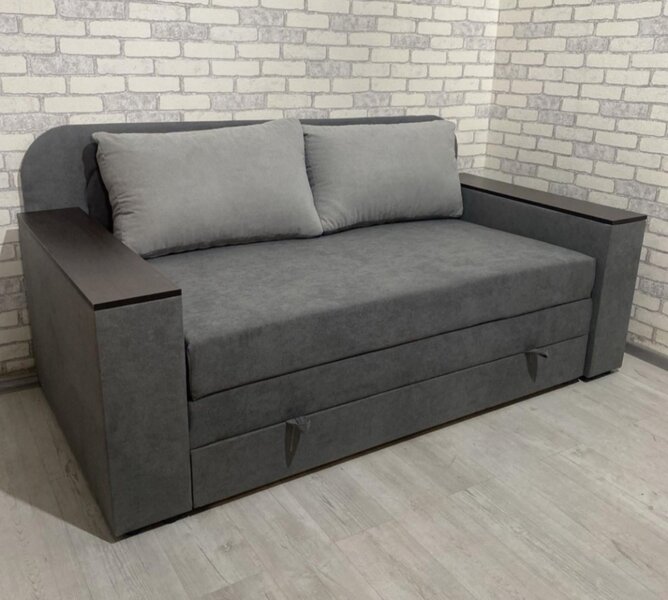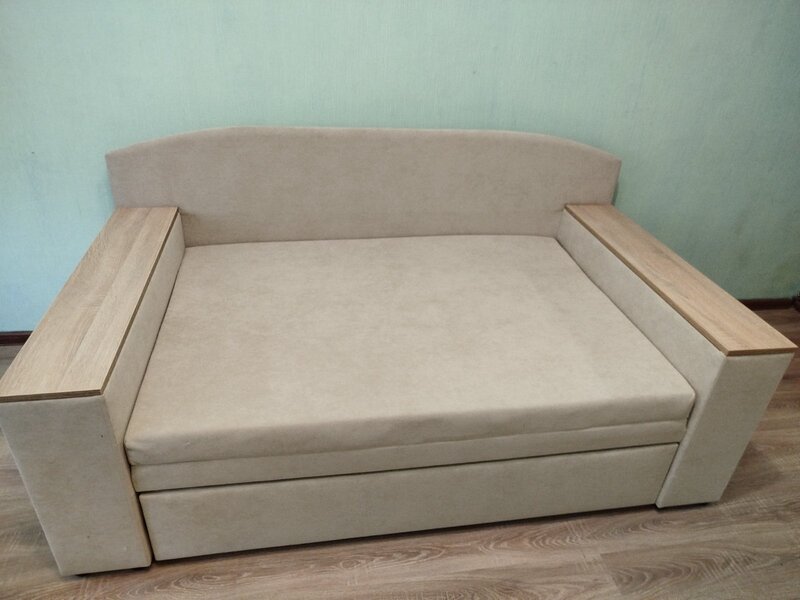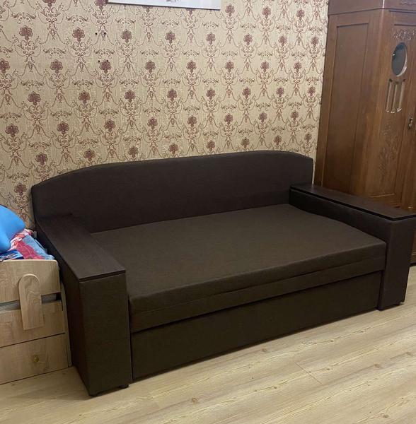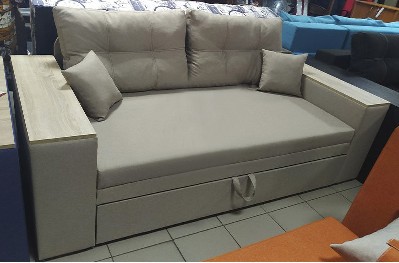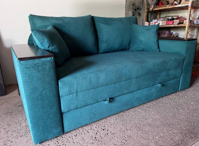 Кубус - викатний диван для повсягденного сну з нішами у боковинах. Каркас дивану посилений за рахунок цільного брусу "золотий стандарт" 60 мм * 45 мм, який витримує підвищене навантаження. На боковинах дивану наклдки з ДСП, які можуть слугувати невеликим столиком для ноутбуку і улюбленої філіжанки кави. У даної моделі підлокітникі "ніши" для зберігання речей ( відкриваються), шириною по 20 см з кожної сторони.