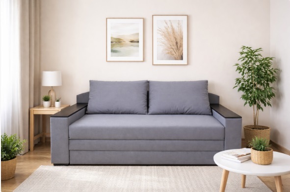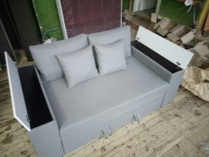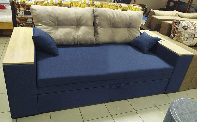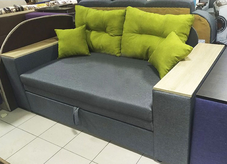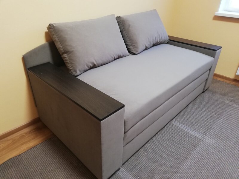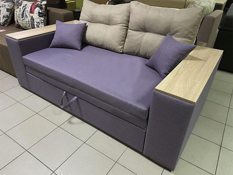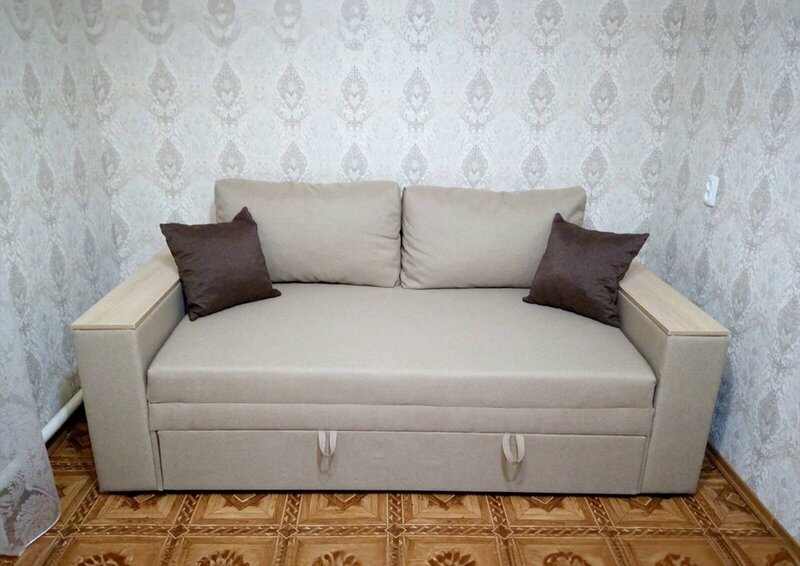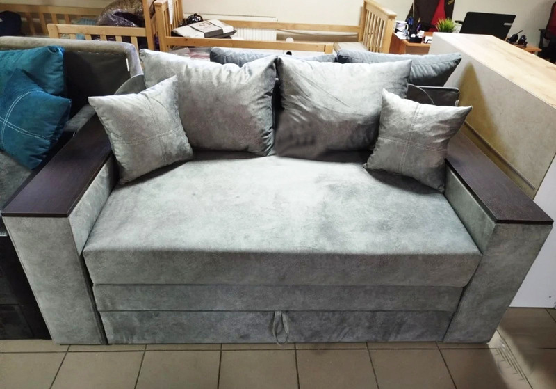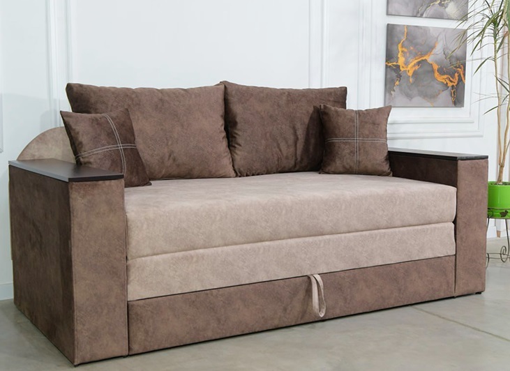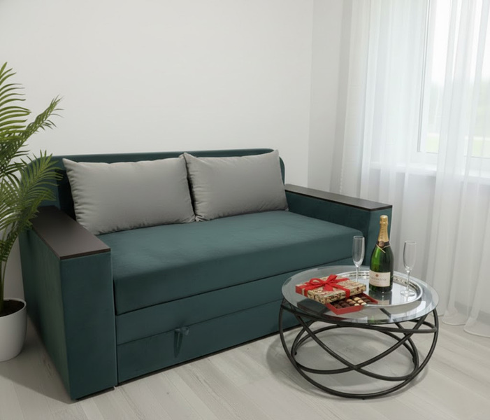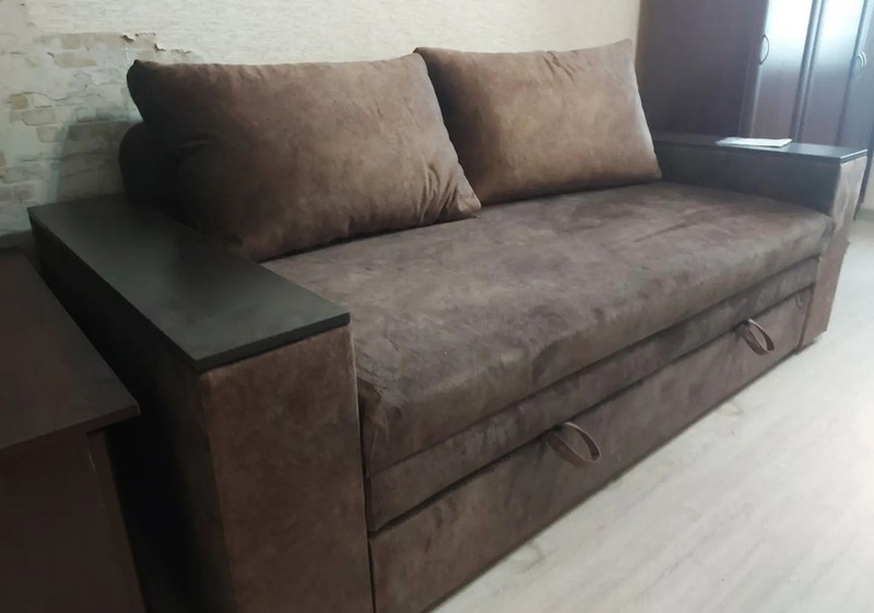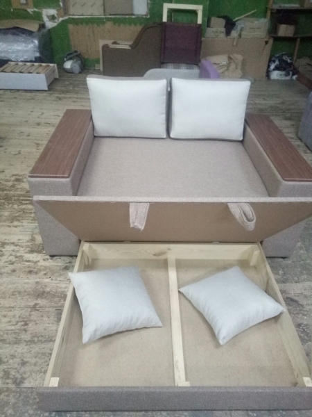 Кубус - викатний диван для повсягденного сну з нішами у боковинах. Каркас дивану посилений за рахунок цільного брусу "золотий стандарт" 60 мм * 45 мм, який витримує підвищене навантаження. На боковинах дивану наклдки з ДСП, які можуть слугувати невеликим столиком для ноутбуку і улюбленої філіжанки кави. У даної моделі підлокітникі "ніши" для зберігання речей ( відкриваються), шириною по 20 см з кожної сторони.
