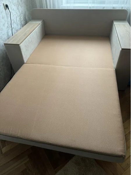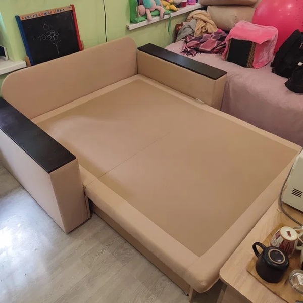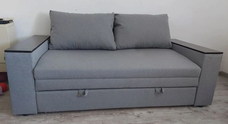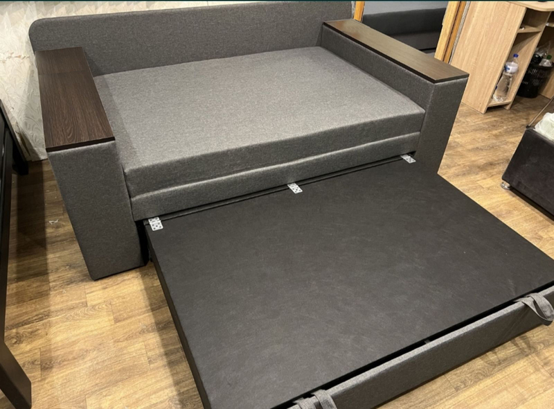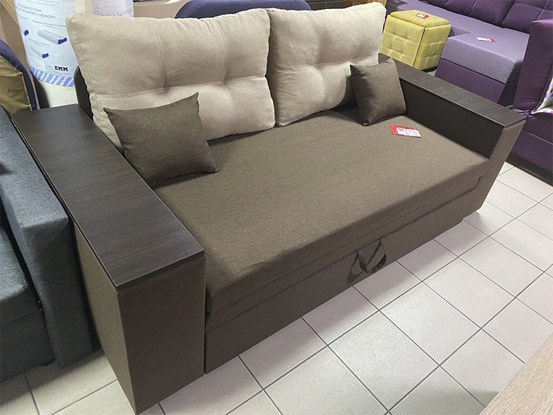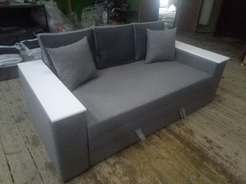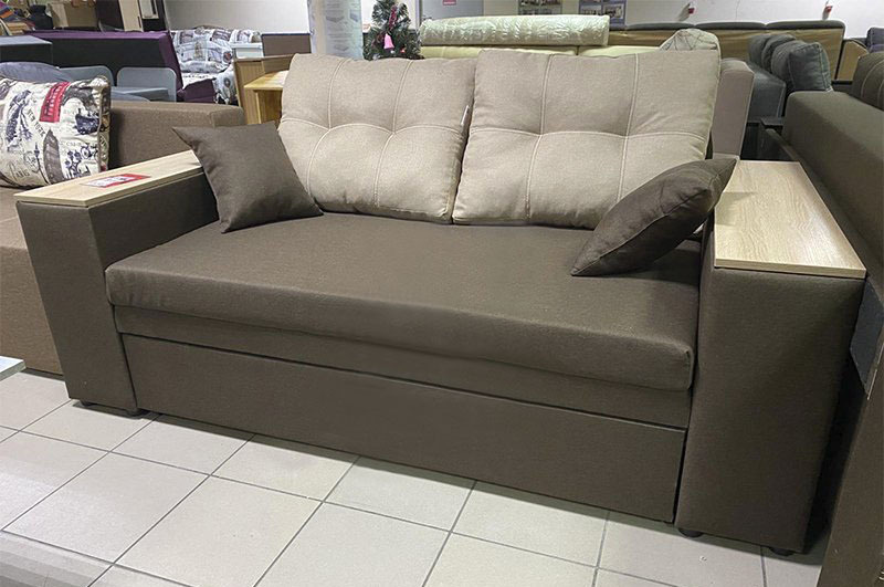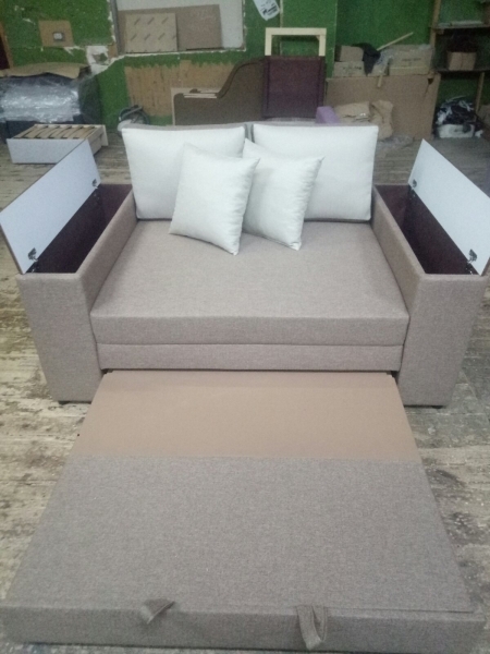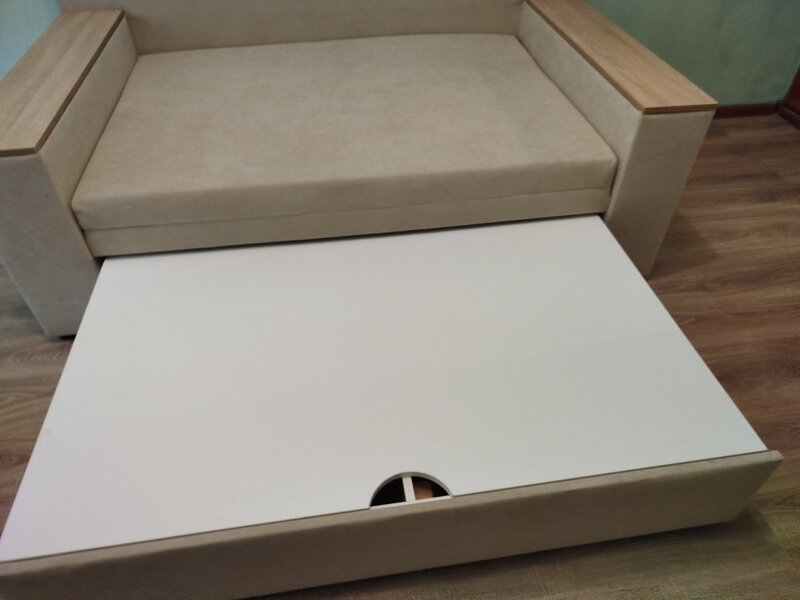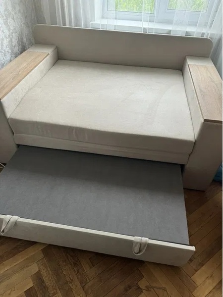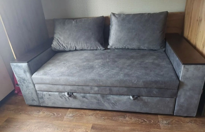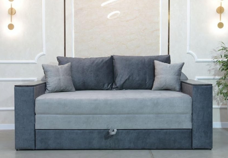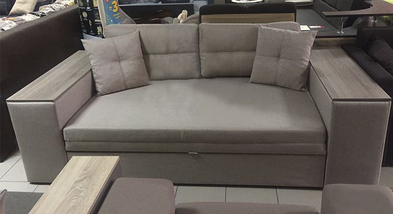 Кубус - викатний диван для повсягденного сну з нішами у боковинах. Каркас дивану посилений за рахунок цільного брусу "золотий стандарт" 60 мм * 45 мм, який витримує підвищене навантаження. На боковинах дивану наклдки з ДСП, які можуть слугувати невеликим столиком для ноутбуку і улюбленої філіжанки кави. У даної моделі підлокітникі "ніши" для зберігання речей ( відкриваються), шириною по 20 см з кожної сторони.