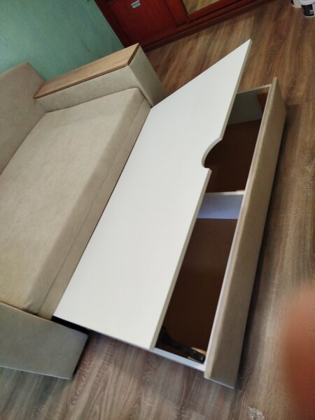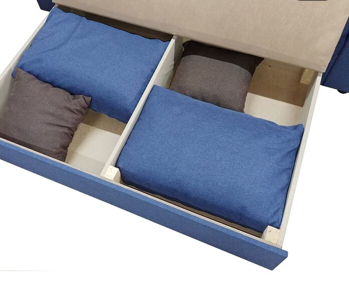 По всій довжині дивана містка ніша для постільних речей. Ящик для білизни закривається і таким чином запобігає потраплянню пилу всередину.