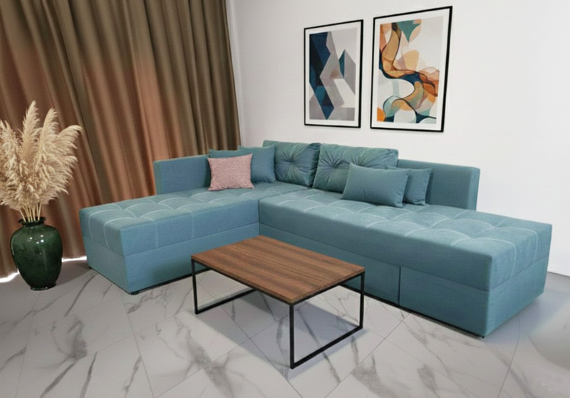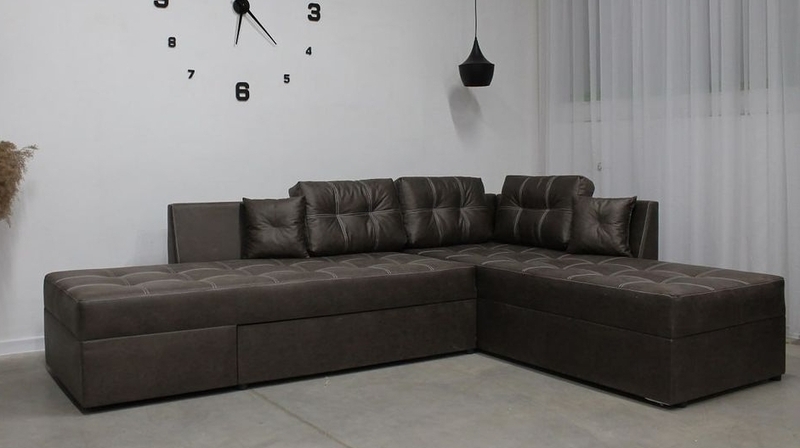 Такий диван не займає багато місця в кімнаті і при розкладанні перетворюється на повноцінне двоспальне ліжко.