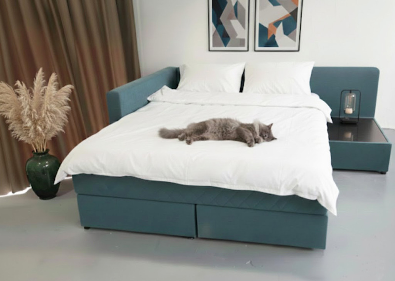 З однієї сторони дивану є додаткова прямокутна ніша тумбочка для речей.