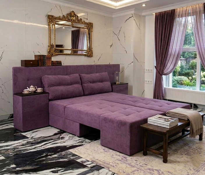 Диван має кілька положень трансформації, що перетворюють на прямий диван, кутовий диван та двоспальне ліжко.