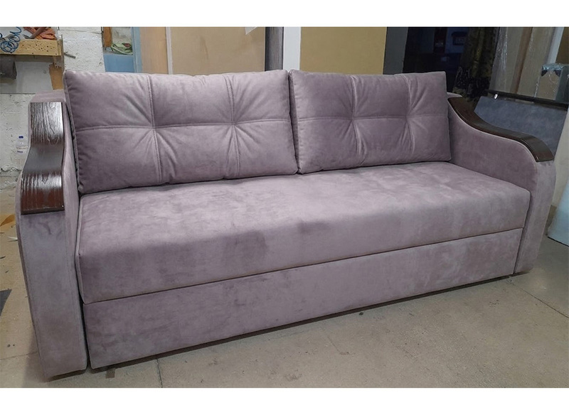 Ширина боковин 17 см з кожної сторони. На боковинах дивану накладки натурального дерева.