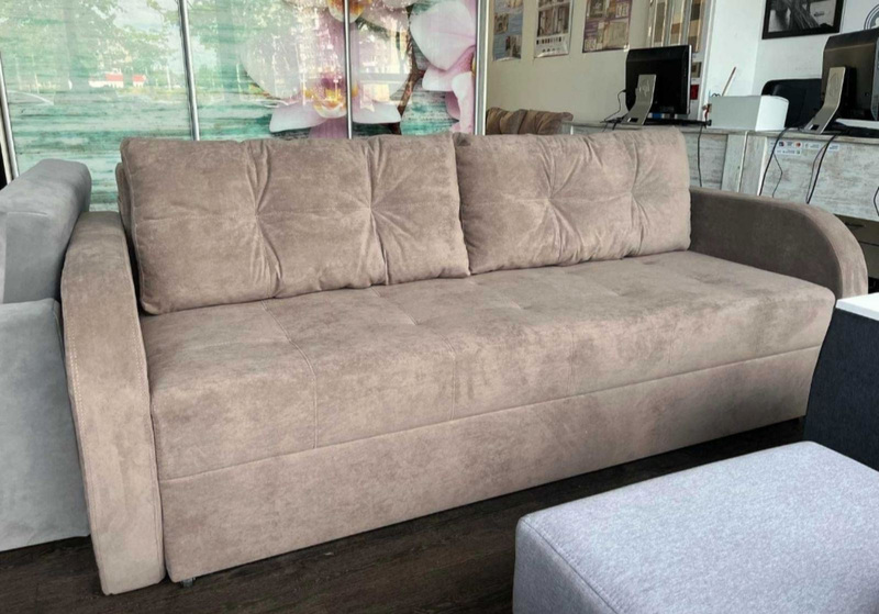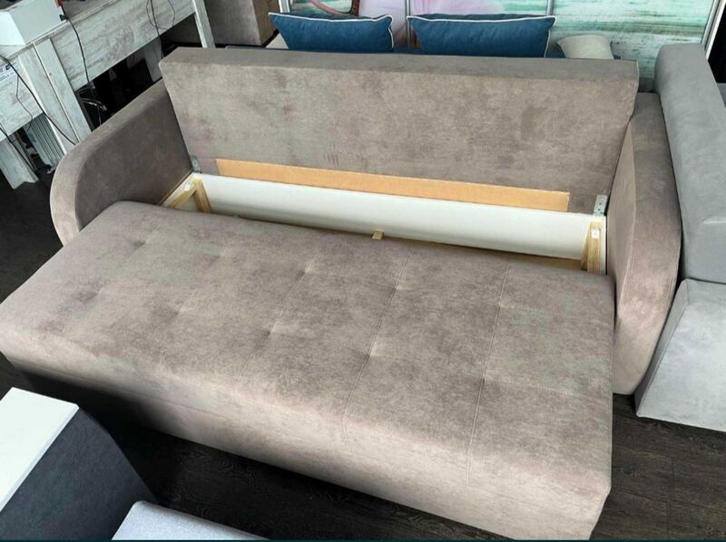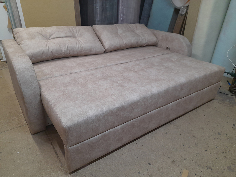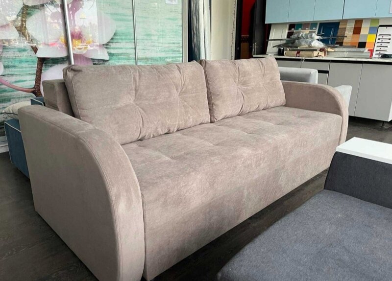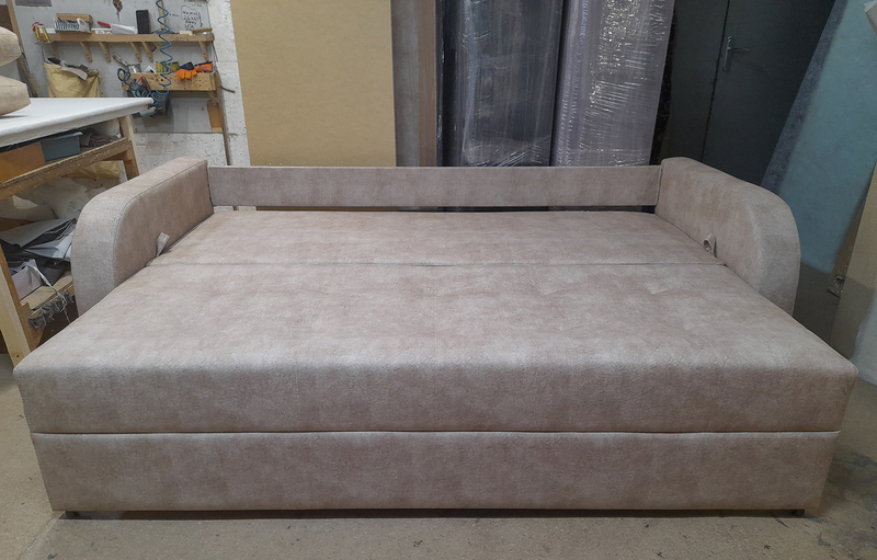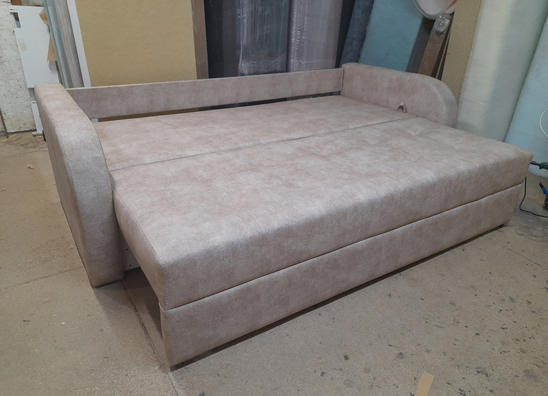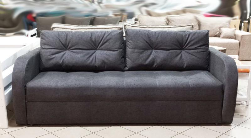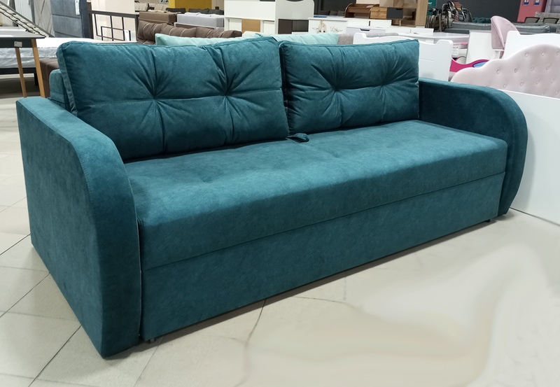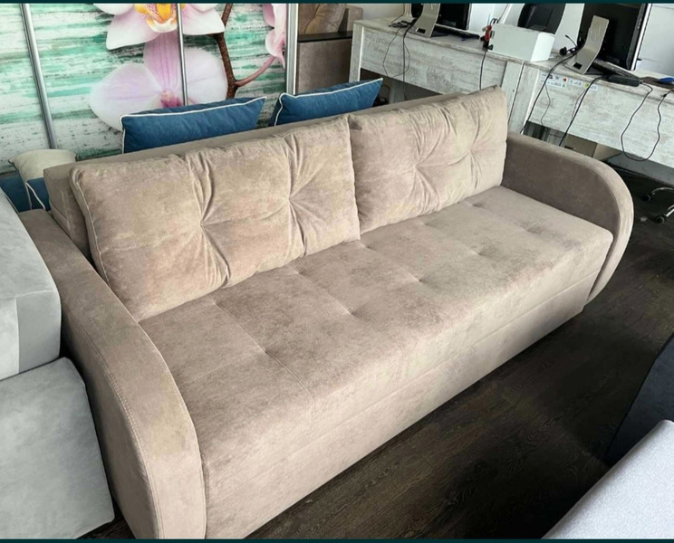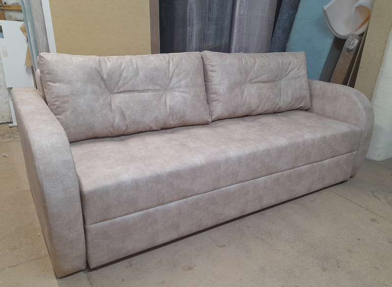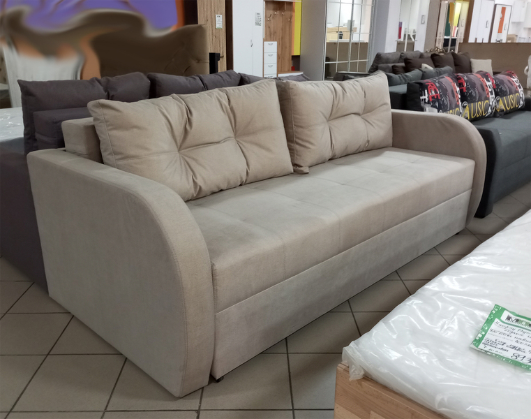 Матрац дивану складається: * посилений 5-ти витковий пружиний блок «Bonnel» (пружини не просідають під час експлуатації) * багатошарове ППУ (пенополіуретан) підвищеної щільності (апобігає просіданню матрацу часом і гарно тримає форму дивану), * термопресованний войлок (вовняна тканина, що гарно тримає тепло і не парить) * сінтепон для помякшення; *спанбонд-здатний витримувати велику вагу, не втрачаючи цілісності та не піддаючись деформації, що захищає внутрішнє наповнення матрасу від подходження і розриву від надмірного аюо не равномірного навентаження; * технічна тканина на хб основі (щоб не парив матрац); * основна тканина оббивки. По всій довжині дивана місткий ящик для білизни. Механізм розкладання євро-книжка. Основа каркасу посилений брус дерева соснових порід. Дивани йдуть у комплекті з двома великими прошитими меблевими подушками. Дивани підтримуються у складській програмі.