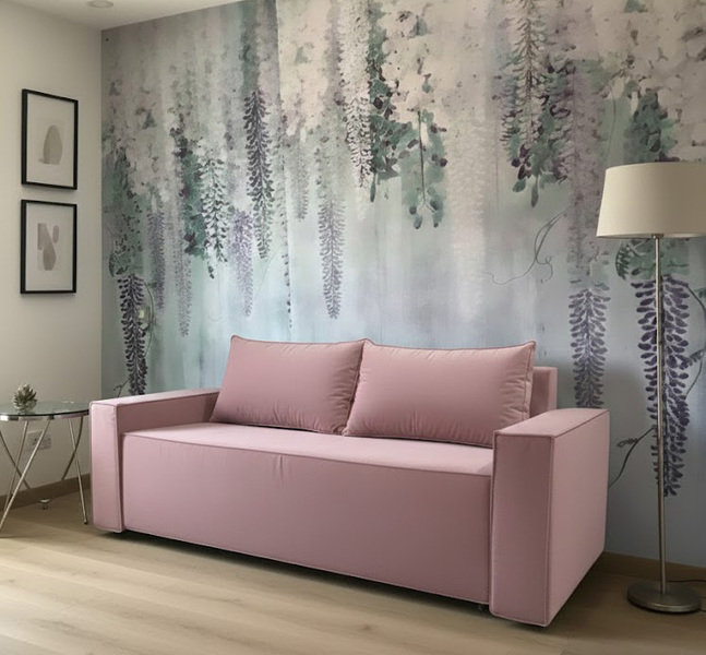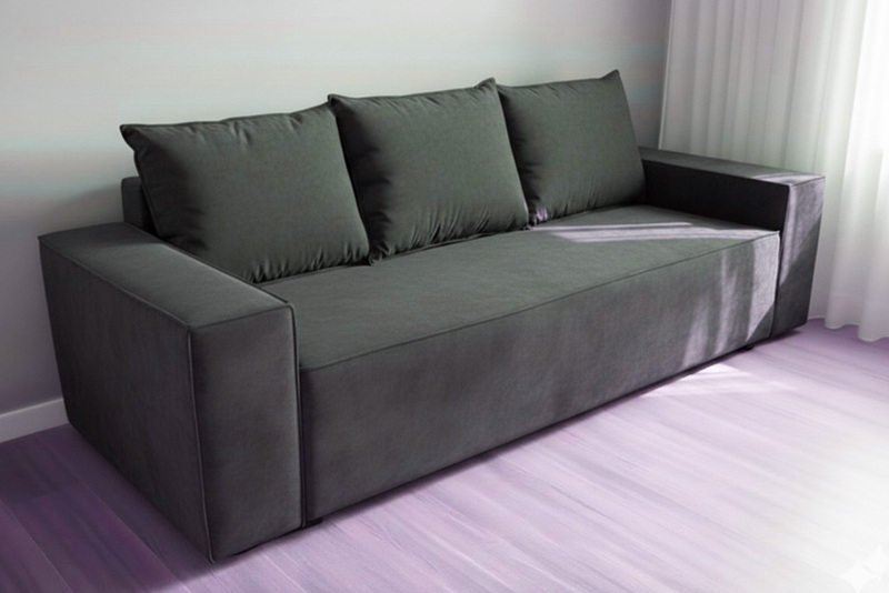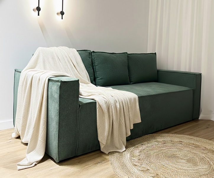 Механізм трансформації: евро-книжка. По всьому периметру дивану є велика ніша для речей. Матрац дивану складається: * посилений 5-ти витковий пружиний блок «Bonnel» (пружини не просідають під час експлуатації) * багатошарове ППУ (пенополіуретан) підвищеної щільності (апобігає просіданню матрацу часом і гарно тримає форму дивану), * термопресованний войлок (вовняна тканина, що гарно тримає тепло і не парить) * сінтепон для помякшення; *спанбонд-здатний витримувати велику вагу, не втрачаючи цілісності та не піддаючись деформації, що захищає внутрішнє наповнення матрасу від подходження і розриву від надмірного аюо не равномірного навентаження; * технічна тканина на хб основі (щоб не парив матрац); * основна тканина оббивки.