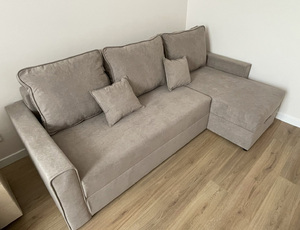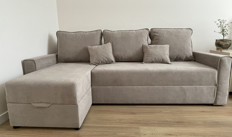 Кутовий диван Вейв надзвичайно популярний у країнах европейського союзу, а тепер став доступний для вітчизняного споживача і по якості і по вартості. Задня стінка дивану зашивається основною тканиною. Габаритні розміри дивану: Матрац середньої жорсткості. Матрац дивану складається: * посилений 5-ти витковий пружиний блок «Bonnel» (пружини не просідають під час експлуатації) * багатошарове ППУ (пенополіуретан) підвищеної щільності (апобігає просіданню матрацу часом і гарно тримає форму дивану), * термопресованний войлок (вовняна тканина, що гарно тримає тепло і не парить) * сінтепон для помякшення; *спанбонд-здатний витримувати велику вагу, не втрачаючи цілісності та не піддаючись деформації, що захищає внутрішнє наповнення матрасу від подходження і розриву від надмірного аюо не равномірного навентаження; *сінтепон 80 вакуумований; * технічна тканина на хб основі (щоб не парив матрац); * основна тканина оббивки. Матеріал каркасу: ламіноване ДСП, брус хвойних порід дерева 40*60мм (посилений), нвстил 670 білоосновний(самий міцний). Диван має дві великі ніши для білизни: по всьому переметри дивану і у кутовому елементі. У комплекті йде 3 великих меблеві подушки + 2 малі подушки. Здійснюємо доставку по Києву і Київській області, а також по всій Україні. |