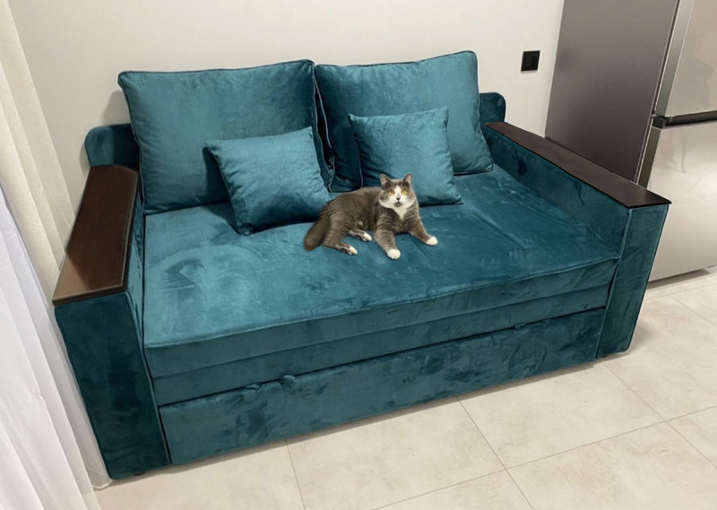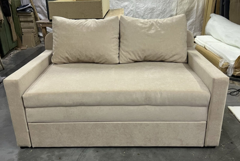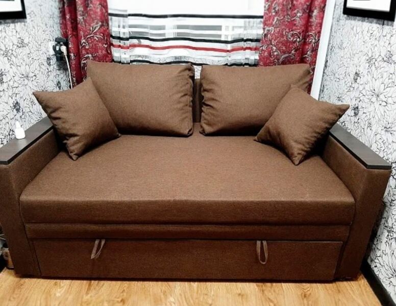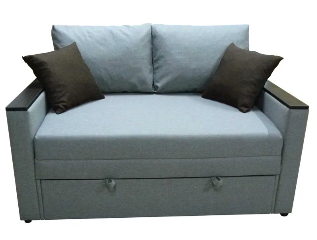 Кубус - викатний диван для повсягденного сну. На боковинах дивану наклдки з ДСП, які можуть слугувати невеликим столиком для ноутбуку і улюбленої філіжанки кави. У даної моделі підлокітникі шириною 10 см з кожної сторони з ДСП накладками (може бути і без накладок). Диван виготовляється з шириною спального місця 120 см, 140 см і 160 см.