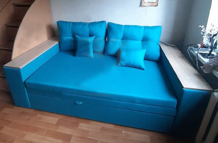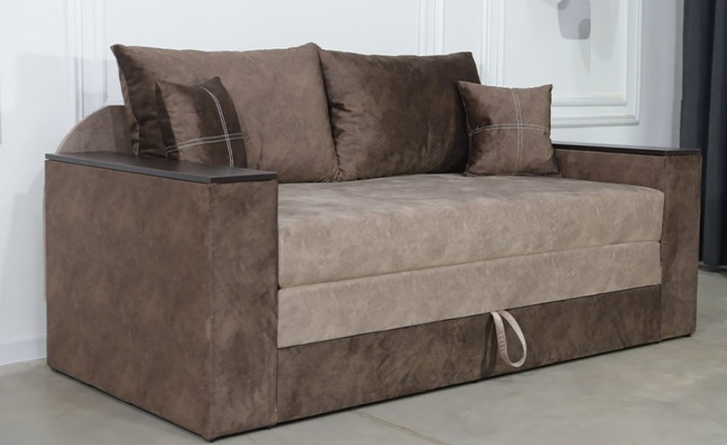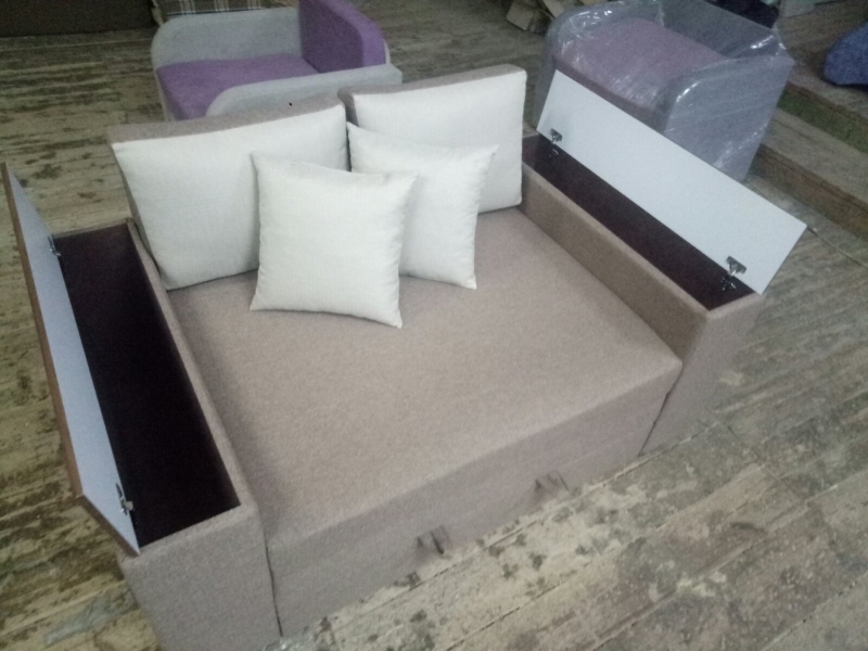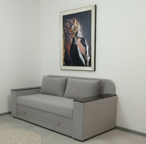 Кубус - викатний диван для повсягденного сну з нішами у боковинах. Каркас дивану посилений за рахунок цільного брусу "золотий стандарт" 60 мм * 45 мм, який витримує підвищене навантаження. На боковинах дивану наклдки з ДСП, які можуть слугувати невеликим столиком для ноутбуку і улюбленої філіжанки кави. У даної моделі підлокітникі "ніши" для зберігання речей ( відкриваються), шириною по 20 см з кожної сторони.