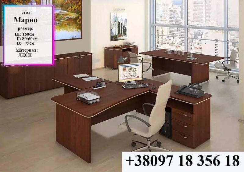 Характеристики набору меблів Маріо : Стіл директора 160х80/60х75см Стільниця ДСП 32мм Інші частини ДСП 16мм