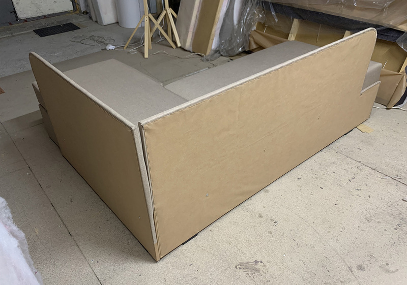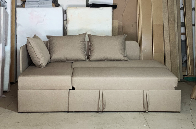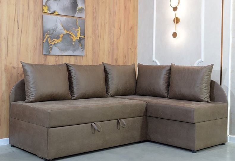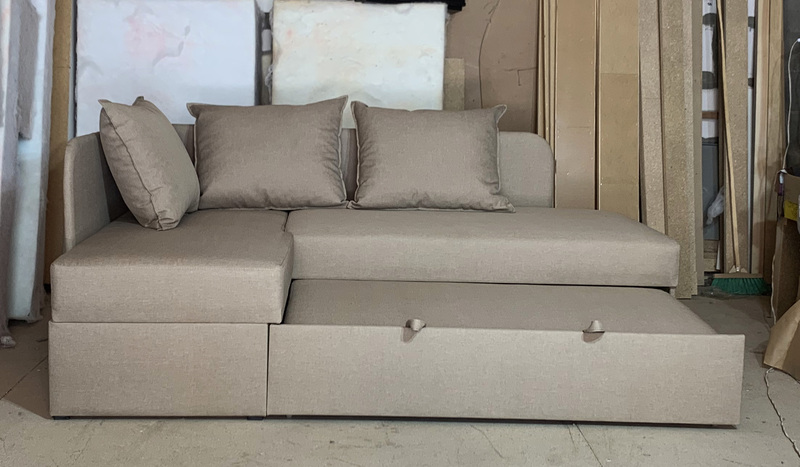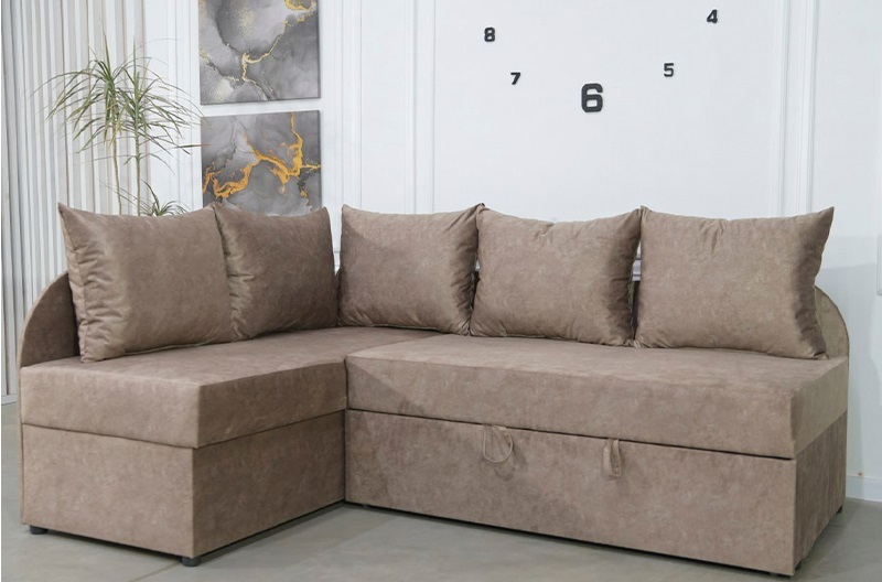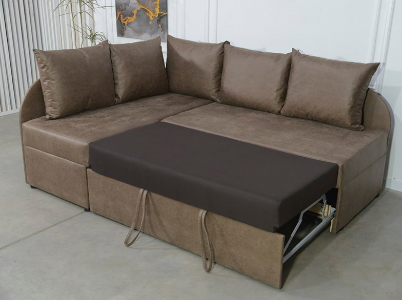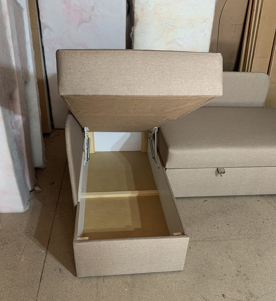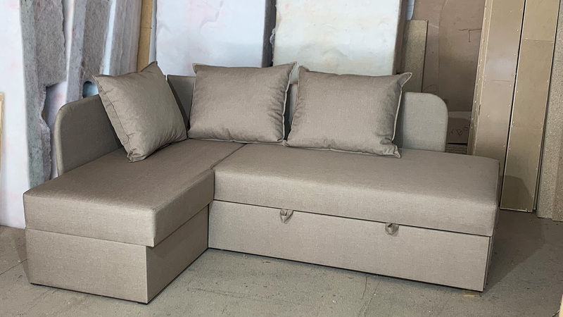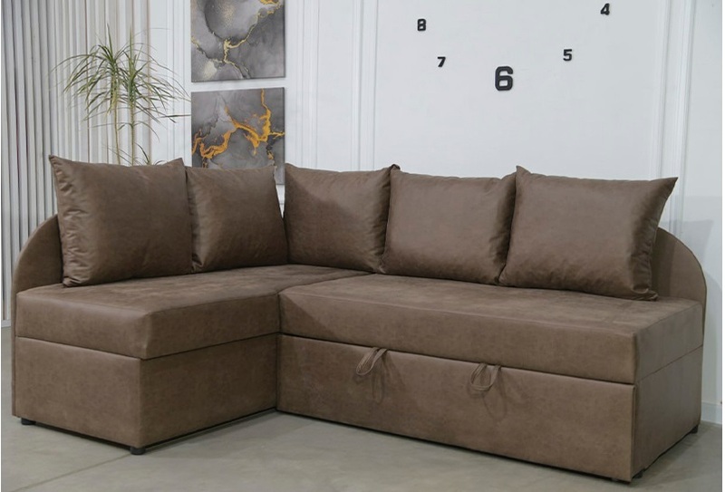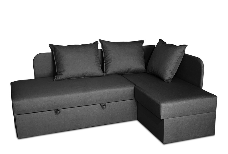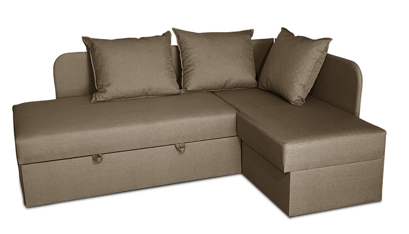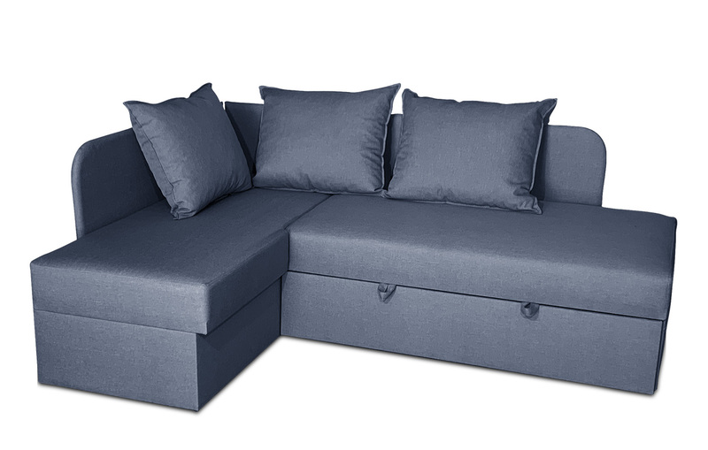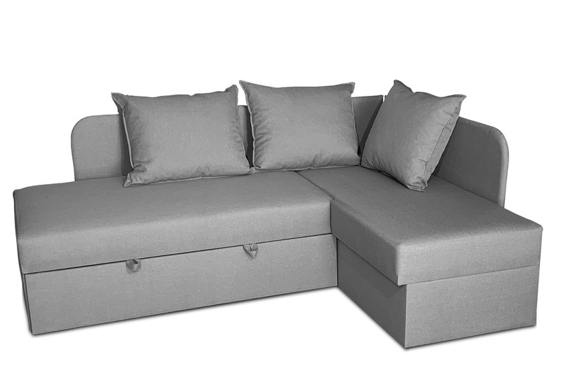 Внизу дивану у кутовому елементі місткий ящик для білизни. Механізм розкладання - "дельфін". Кут дивану необхідно вказувати при замовленні (не переставляється).