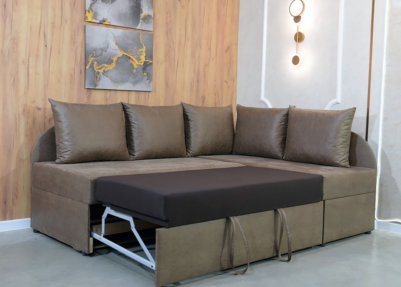 Кутовий диван Гранд - стильний та сучасний диван, що займає мінімум місця у квартирі з повноцінним двоспальним місцем 152 см на 200 см. Модедь ідеально підходить для малих приміщеннь де потрібно повноцінне двоспальне місце.
