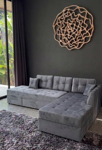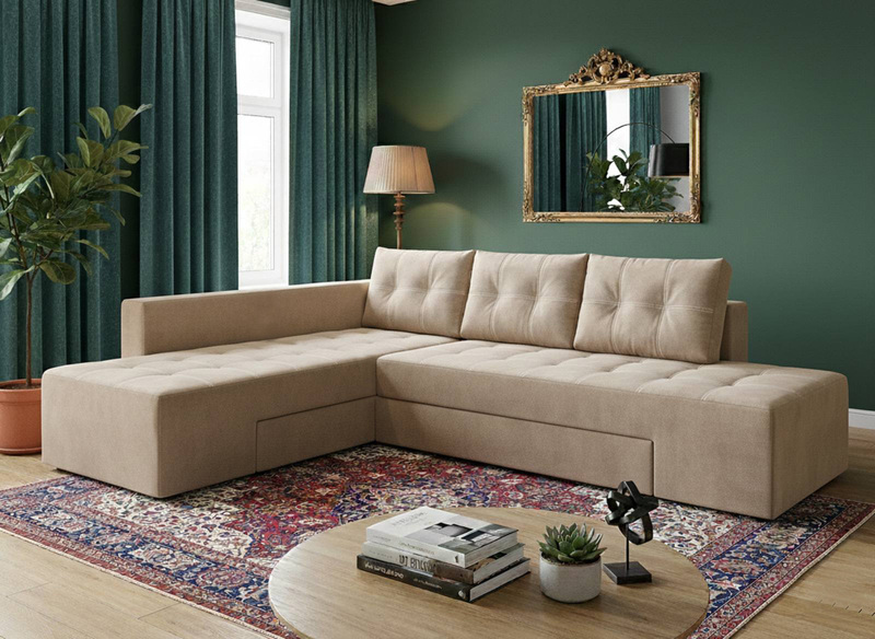 Такий диван не займає багато місця в кімнаті і при розкладанні перетворюється на повноцінне двоспальне ліжко.