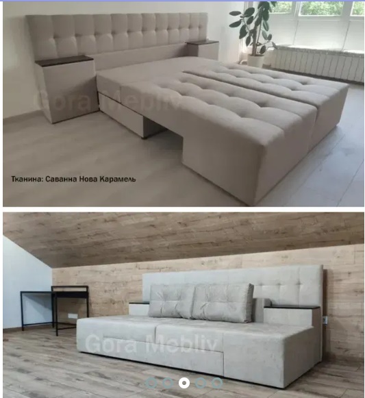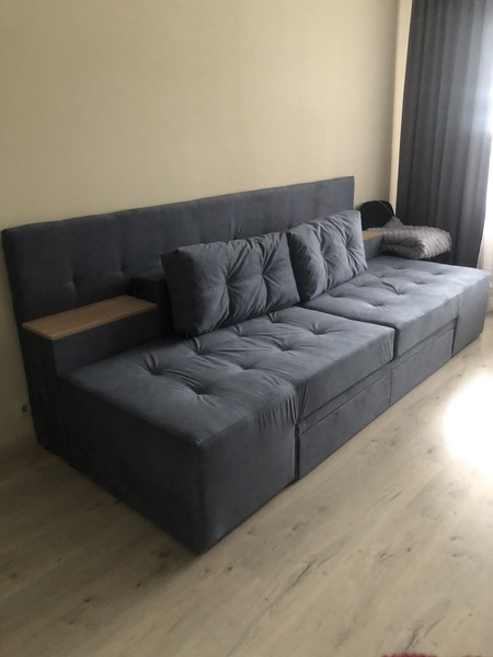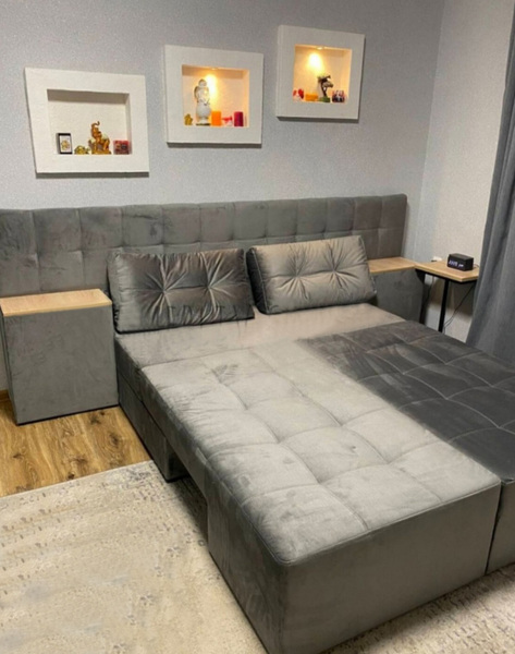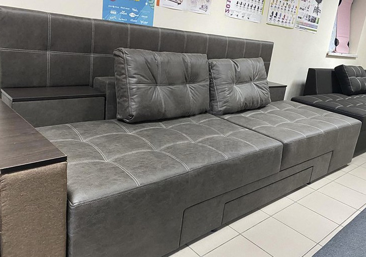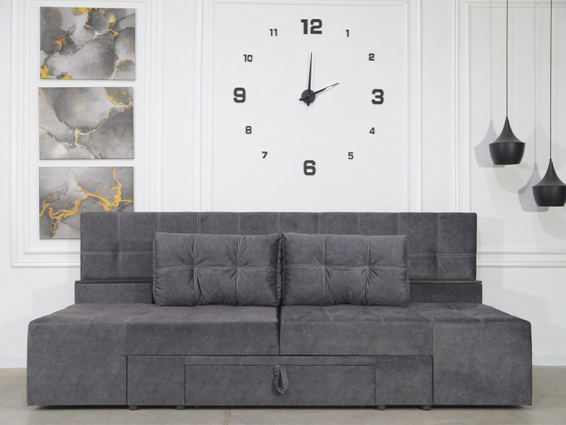 Диван має кілька положень трансформації, що перетворюють на прямий диван, кутовий диван та двоспальне ліжко.