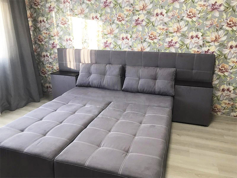 Такий диван не займає багато місця в кімнаті і при розкладанні перетворюється на повноцінне двоспальне ліжко.