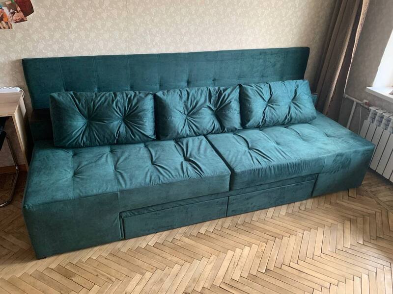 Диван має високу ізносостійкість за рахунок посиленого брусу, з якого виготовлється каркас дивану, а також прошивок по матрацу.